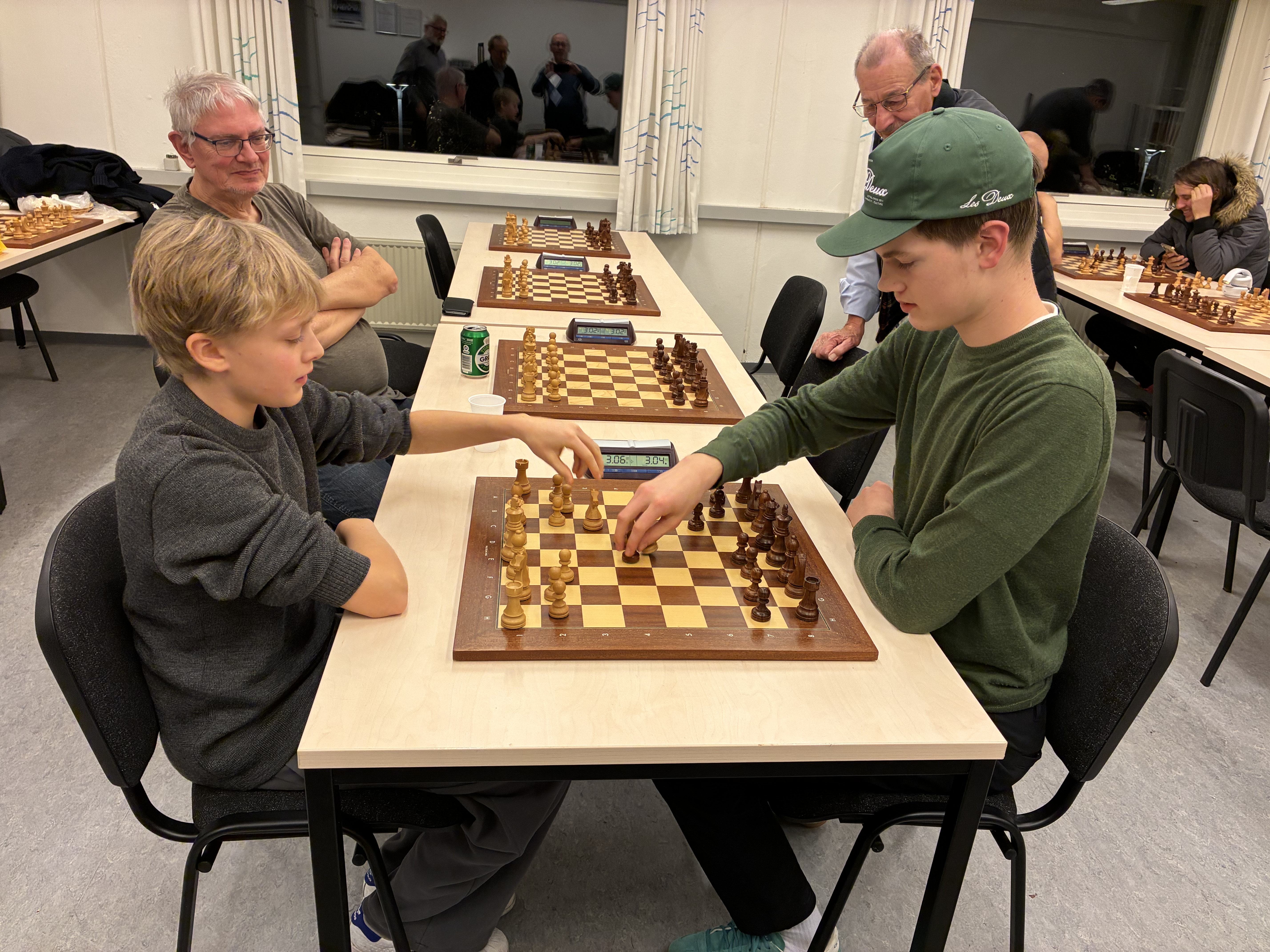 Peter Skovgaard, med sort på fotoet i finalen mod Sigfred Haubro, vandt BMS Skak's FischerRandom klubmesterskab 2024.